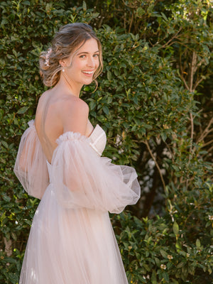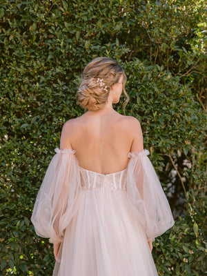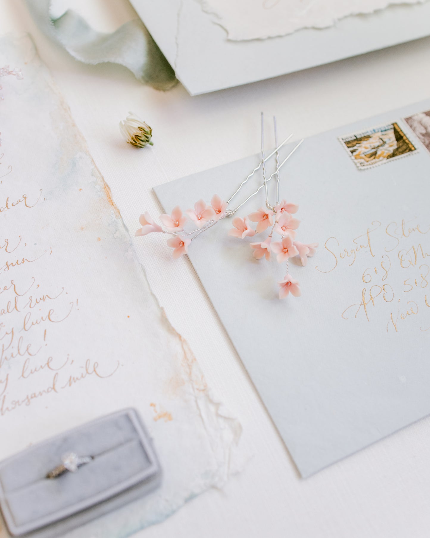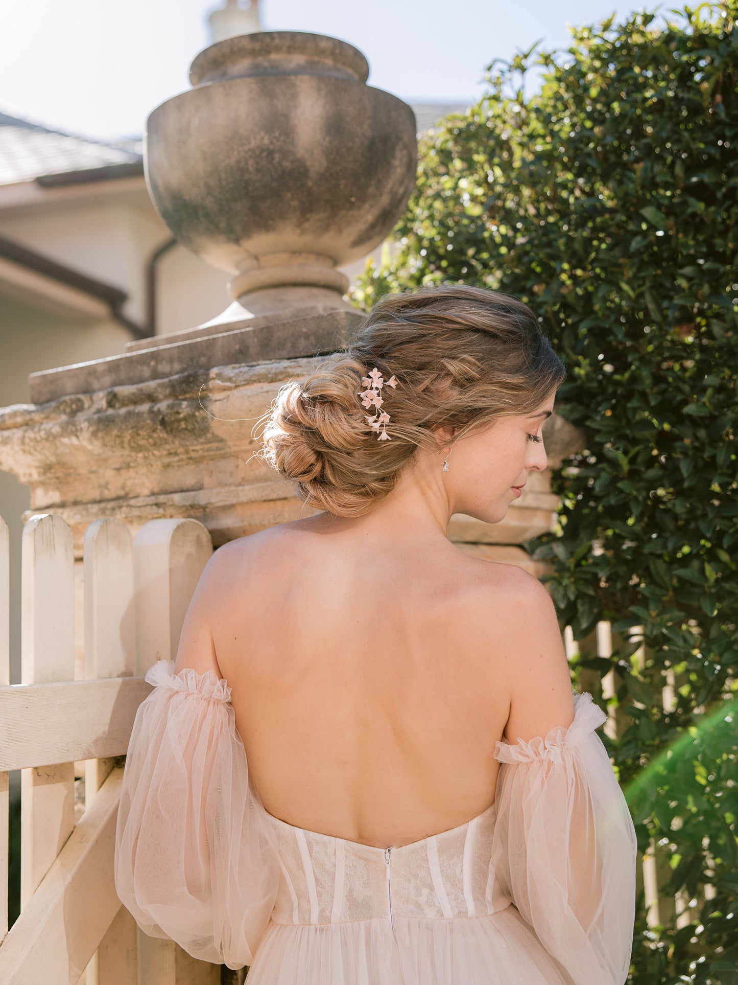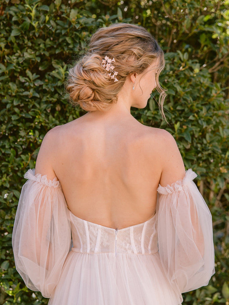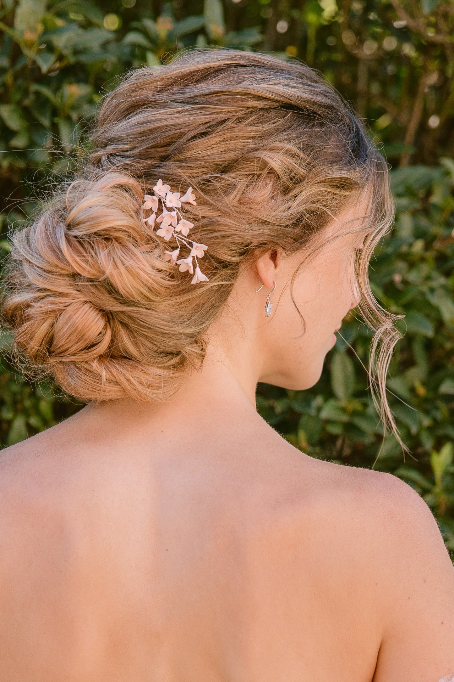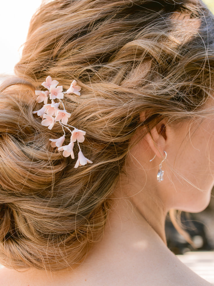 MEGHAN | Simple and minimalist bridal hair pins with light pink of white flowers