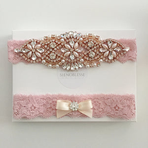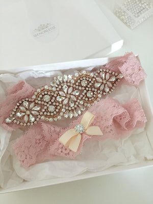 JUDY | Wedding Garter Set Rose Gold Dusty Pink Lace